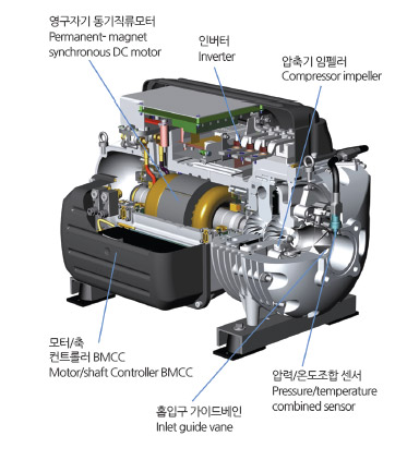 iM-Chiller´Â ÀÀÃà¿Âµµ ±×¸®°í/¶Ç´Â ¿­ºÎÇϰ¡ °¨¼ÒÇÔ¿¡ µû¶ó ¾ÐÃà±â ¼Óµµ¸¦ °¨¼Ò½ÃŰ°í ¿¡³ÊÁöºñ¿ë Àý°¨À» ÃÖ´ëÈ­Çϱâ À§Çؼ­ ÅëÇÕ °¡º¯ Á֯ļö ±¸µ¿À» »ç¿ëÇÕ´Ï´Ù.